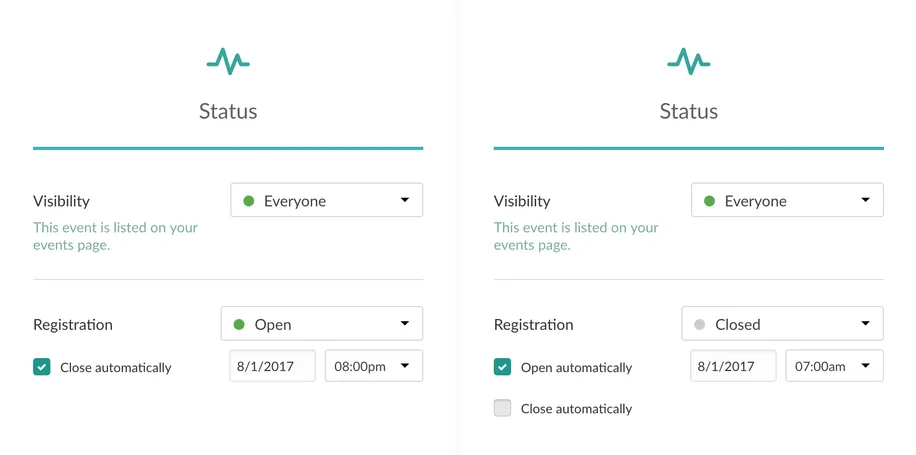 We also show these times on your registration page, so registrants can see when a registration is opening or closing.
