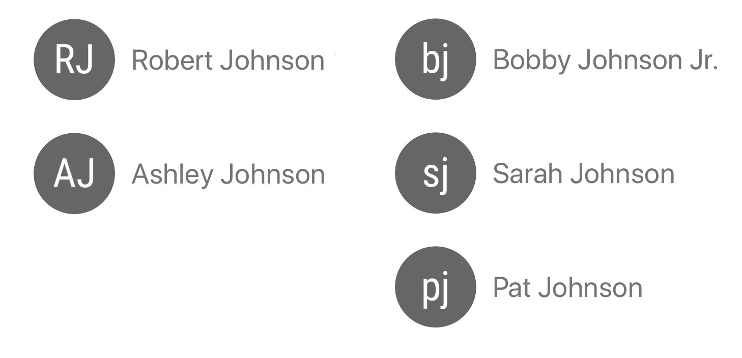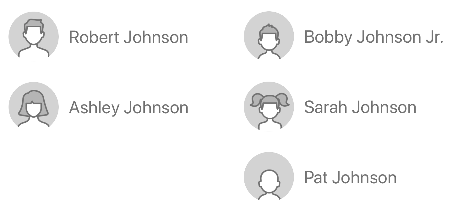 Here’s the Johnson family now, capital letters for adults, lower case for children: