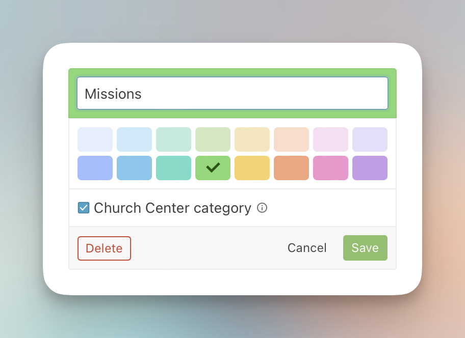 Updating our tag colors gets us closer to the other spaces across Planning Center where colors are being used in similar ways such as Group Types in Groups and Labels in Giving. We know this may change things up for you in the short-term, but don't expect another update to tag colors in the foreseeable future. Thanks for your feedback, and be on the look out for some very cool things coming to Calendar soon!