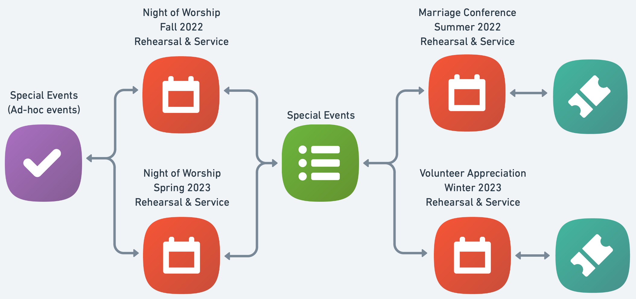 Again, let's talk about setup. You could create a unique Service Type for each of these things, but most churches use a "Special Events" Service Type to house them all so that's what we'll showcase here.