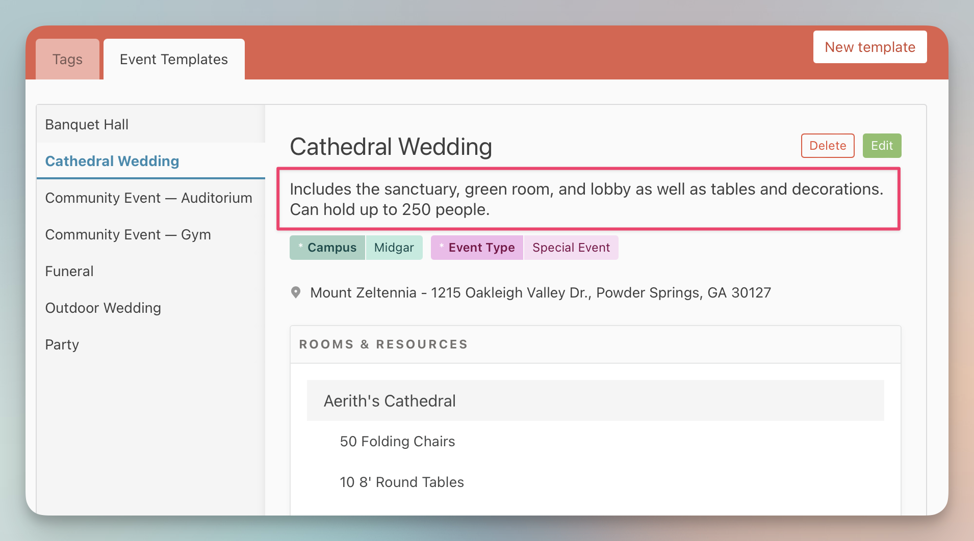 You can now add descriptions to your Event Templates to help you remember what they're used for when applying them to your events!