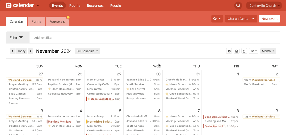 It can take a lot of time to manage all of the events going on at your church! We want to make it as quick and easy as possible to accomplish what you need to in Calendar, which is why we’ve just added a universal search to quickly find for events, rooms, resources, people, or forms. This search functionality is already popular in some of our other products, and we’re so excited to bring it to Calendar as well!
