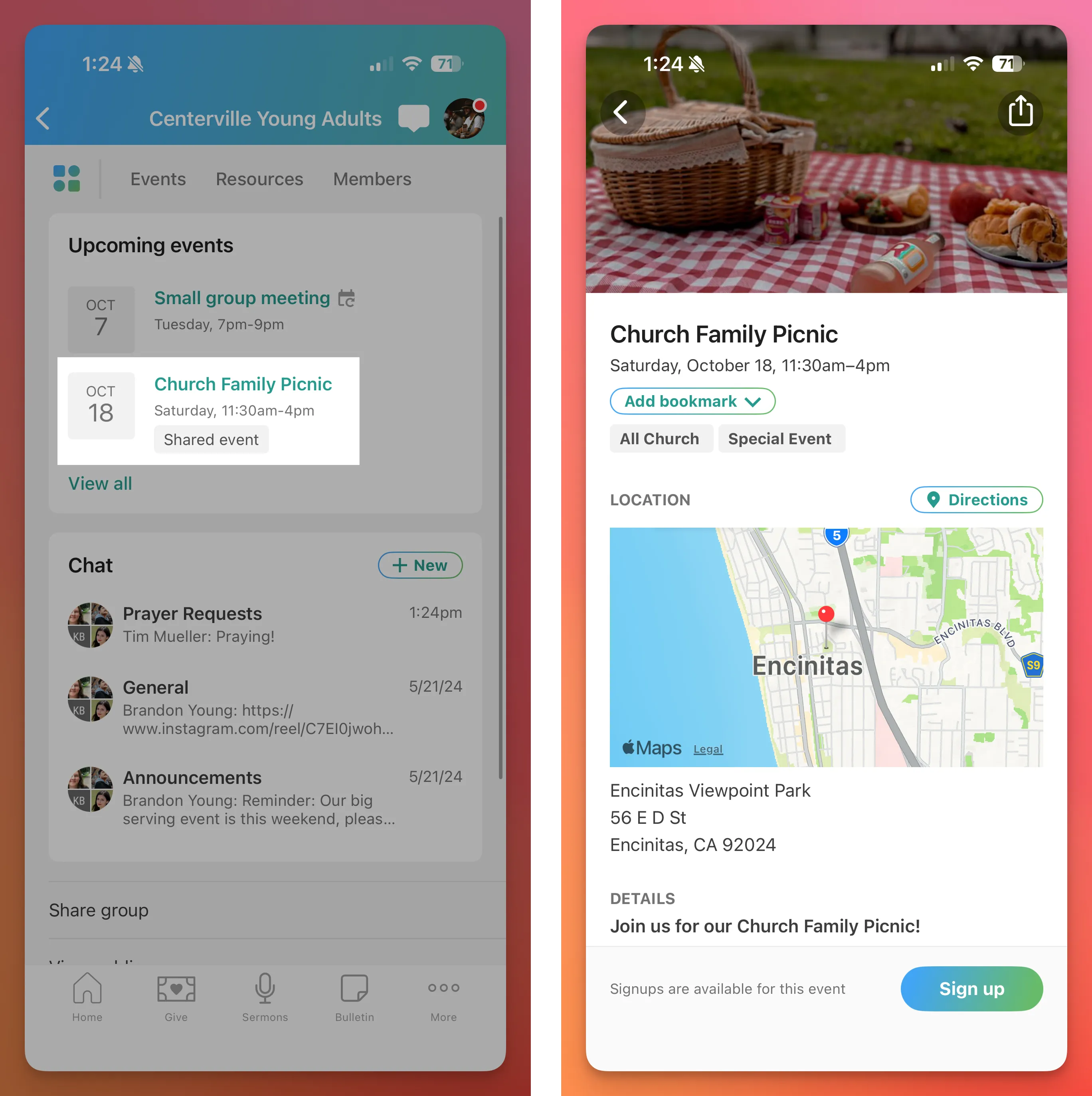 Promoted events display in Church Center