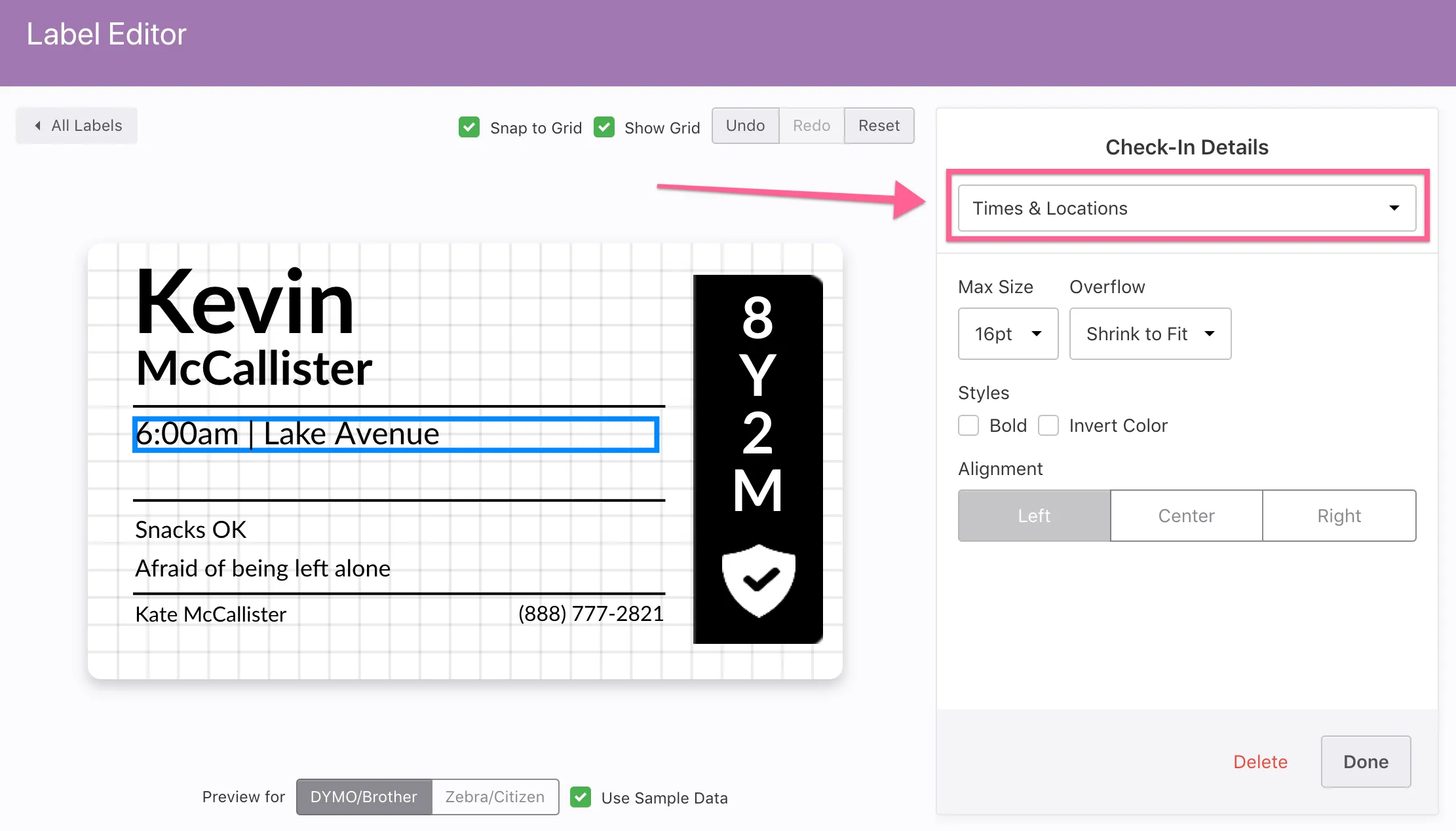 Instead of having two separate elements, one for times & one for locations, we've now added one element to include both! This works really well if you're checking people into multiple times, as it has the same design as the station side.