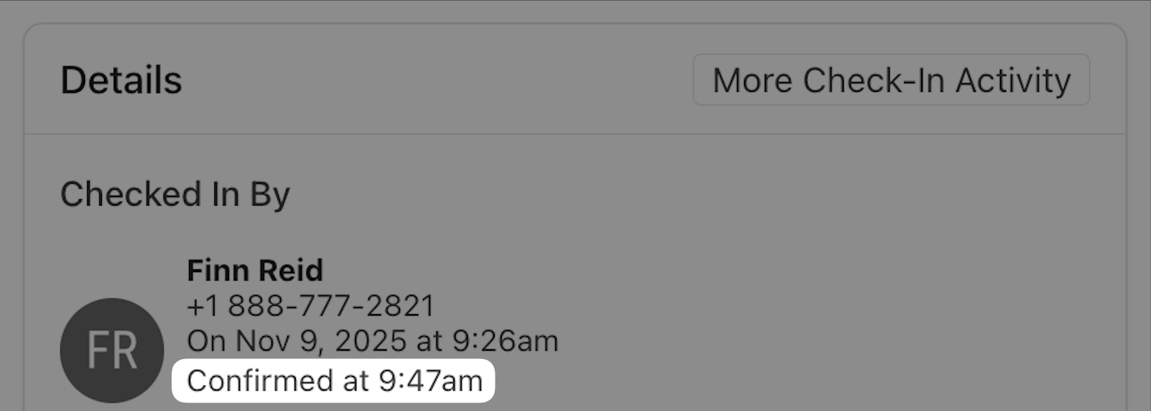 Each check-in record on the admin side now shows the exact time it was confirmed, so you’ll always have a clear historical record of when someone arrived to your location.