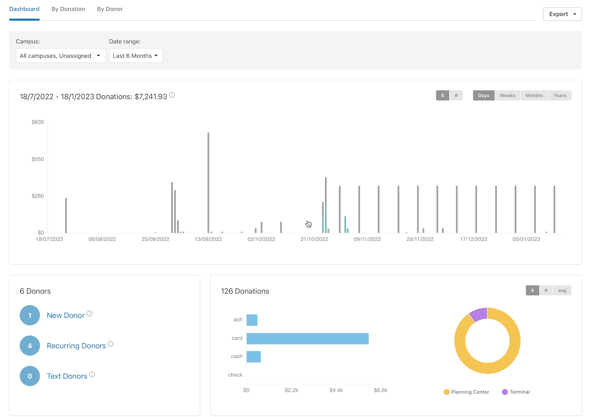 We hope these changes make it easier to understand how to view reporting data within Giving – whether you're viewing that data in the form of dashboard charts, by individual donations, or through the lens of the donors!