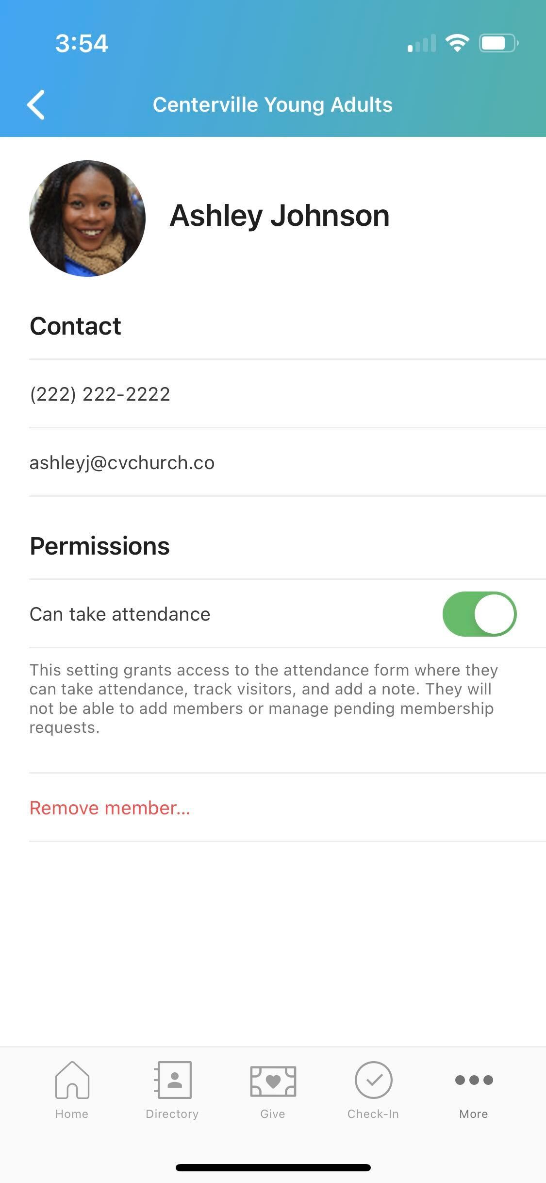 With the latest app update, your Leaders can assign any member they’d like to have the ability to take attendance.