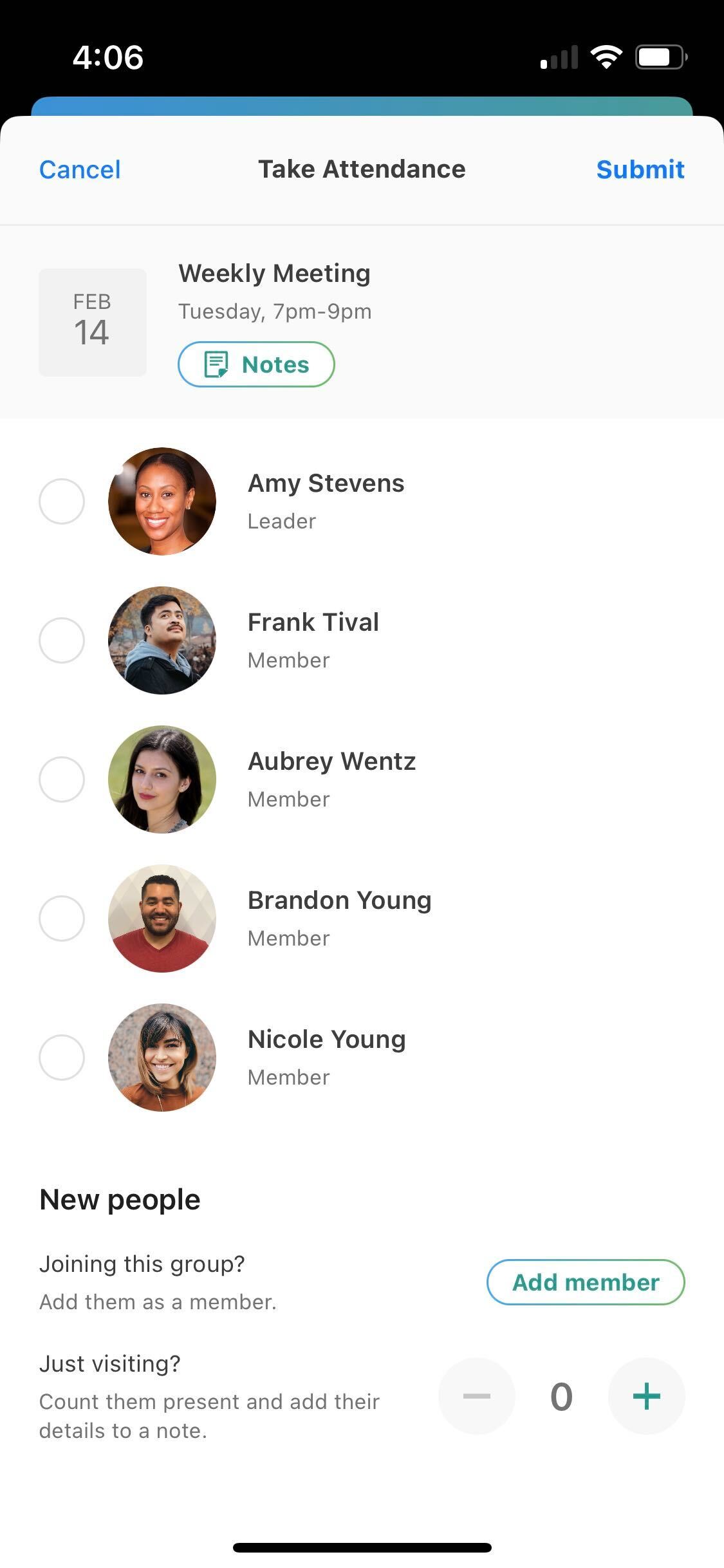 Attendance is at the core of your small groups, and is one of the main ways to make sure people aren’t forgotten or falling through the cracks. The task of actually taking attendance though, isn't always something that's done by a Leader. We’re excited to announce a new permission that allows Members to take attendance.