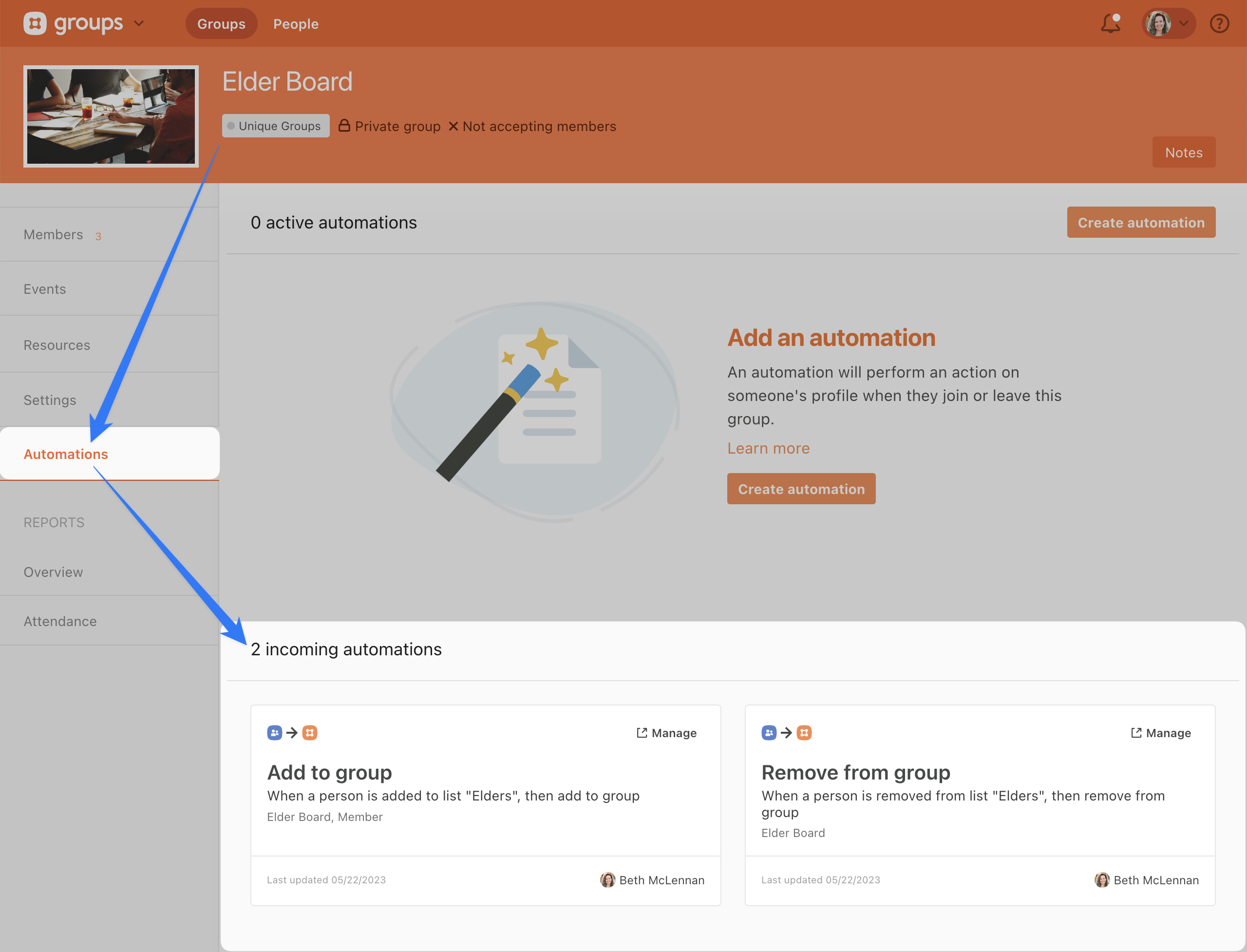 If you’re familiar with automations over in Planning Center People, this should be an exciting announcement. We’re bringing those same powerful automations into Groups, so your Group Admins and Group Type Managers don’t also have to be a People Admin.