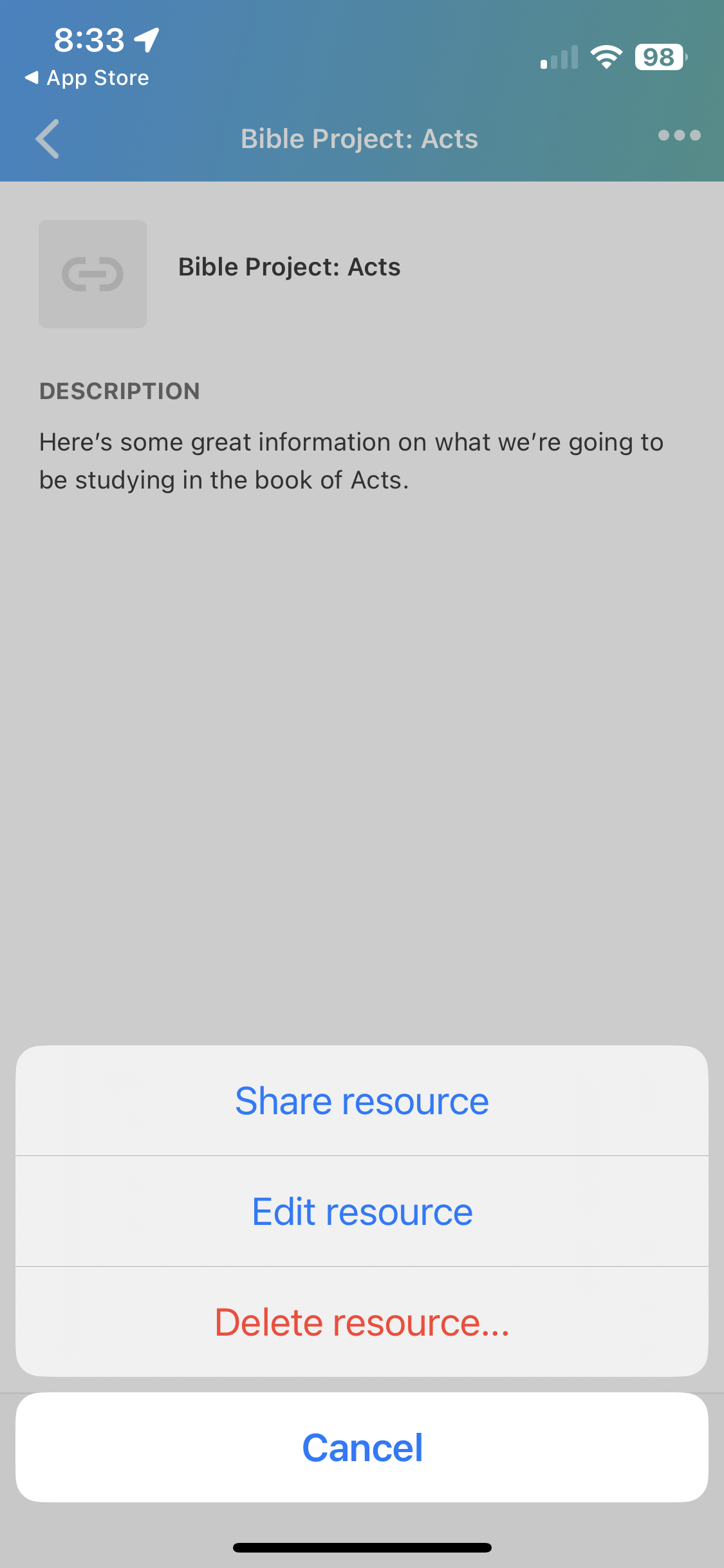 Leaders now have the ability to add and edit resources directly from Church Center.
