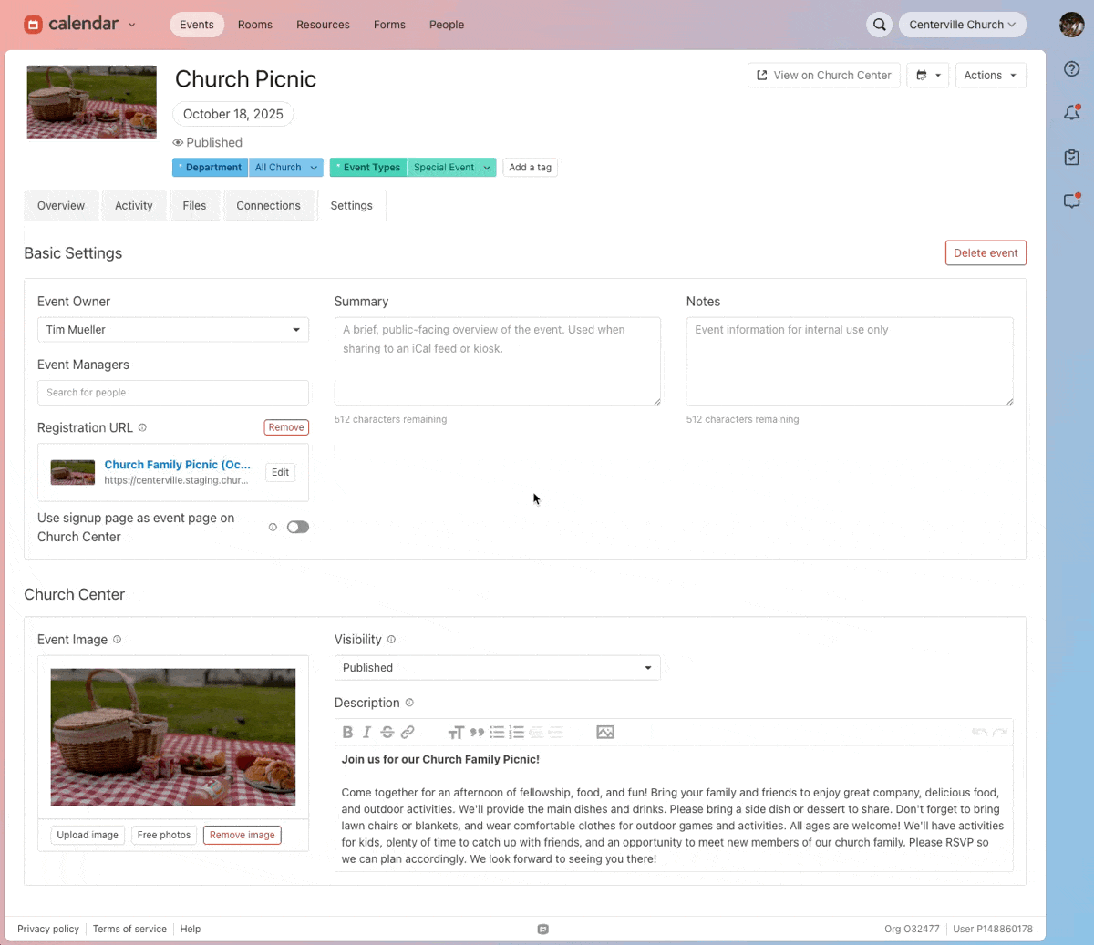Many churches host church-wide events such as picnics, prayer nights, service projects, festivals, worship nights, retreats, and more—events that multiple groups need on their calendars.