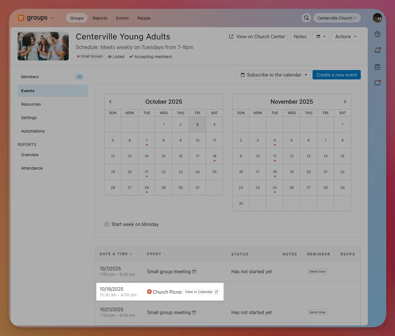Now your church-wide events can actually feel church-wide! No more juggling calendars or copy-pasting details into every group — one event in Calendar can instantly show across all the right Groups. This helps leaders save time, members stay in the loop, and your whole church can move together on the same page. 🙌