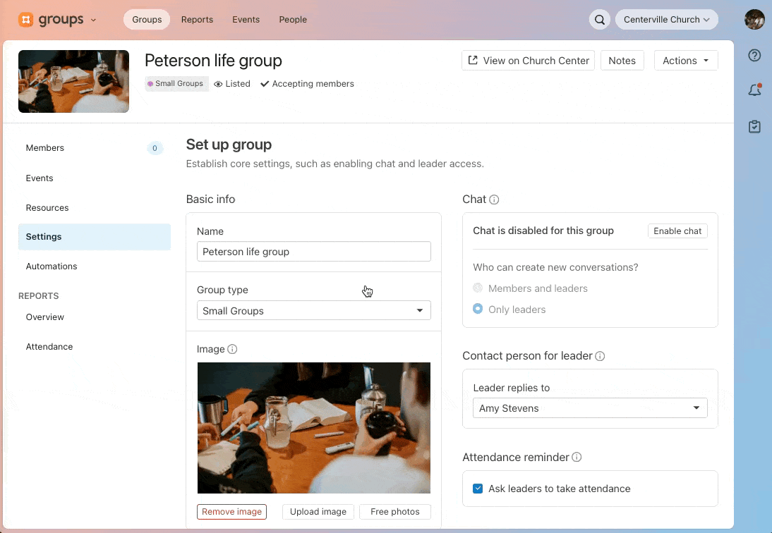 We want the default settings to help groups stay organized and safe. We’ve found that when only leaders can start chats, group communications stay more organized and focused. But every church and every group is different, so the option is still there to enable member-created chats.