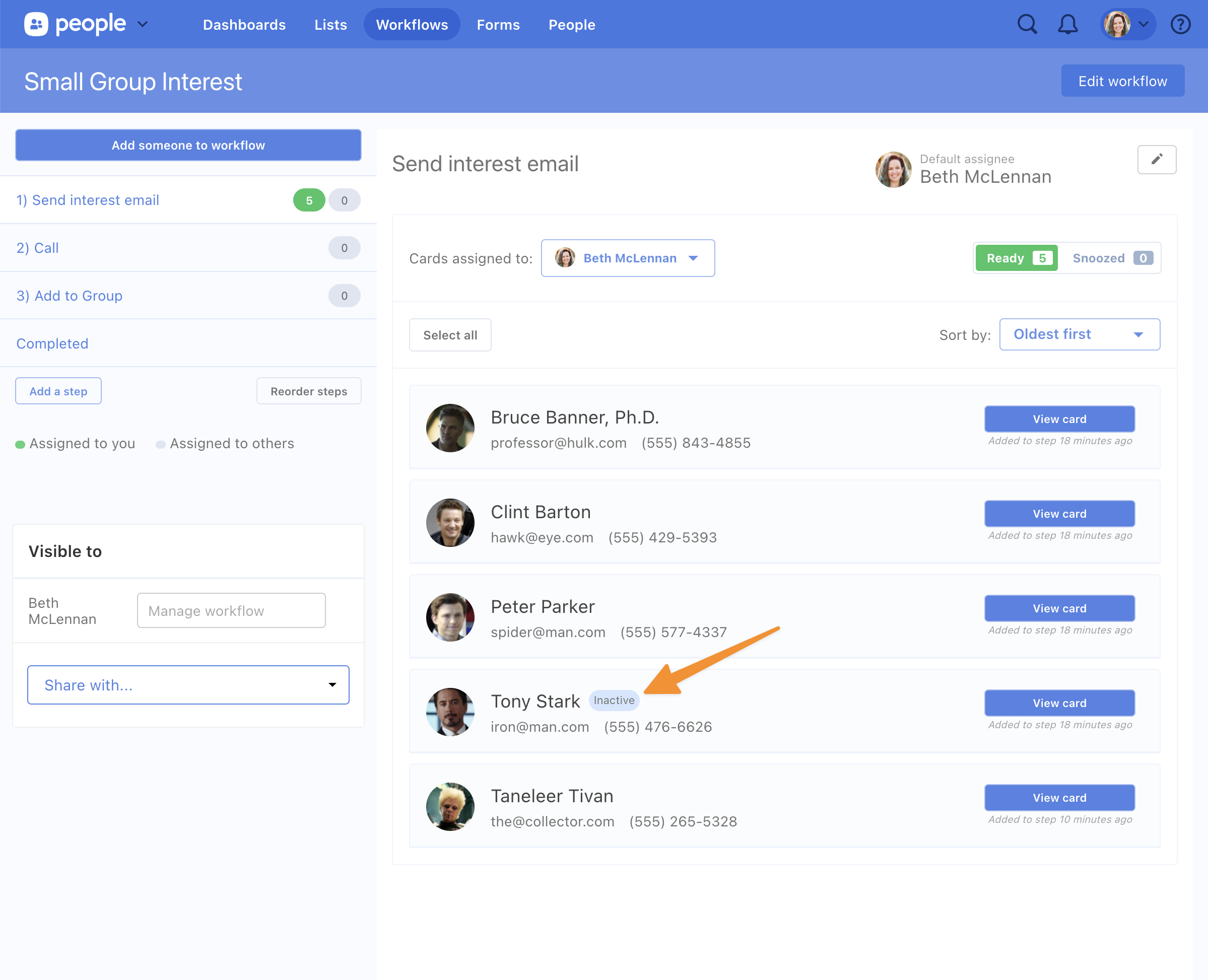 Wonder no longer! Today we added an indicator on both the index of cards in a step, and in the card header! The indicator appears the instant the profile is inactivated.