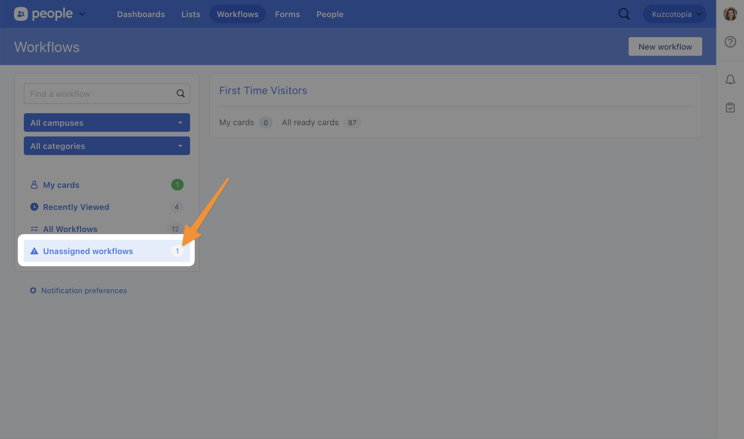First up is a new filter view on the workflows index. This appears only to Organization Administrators, allowing them to see all of the workflows that no longer have a manager: