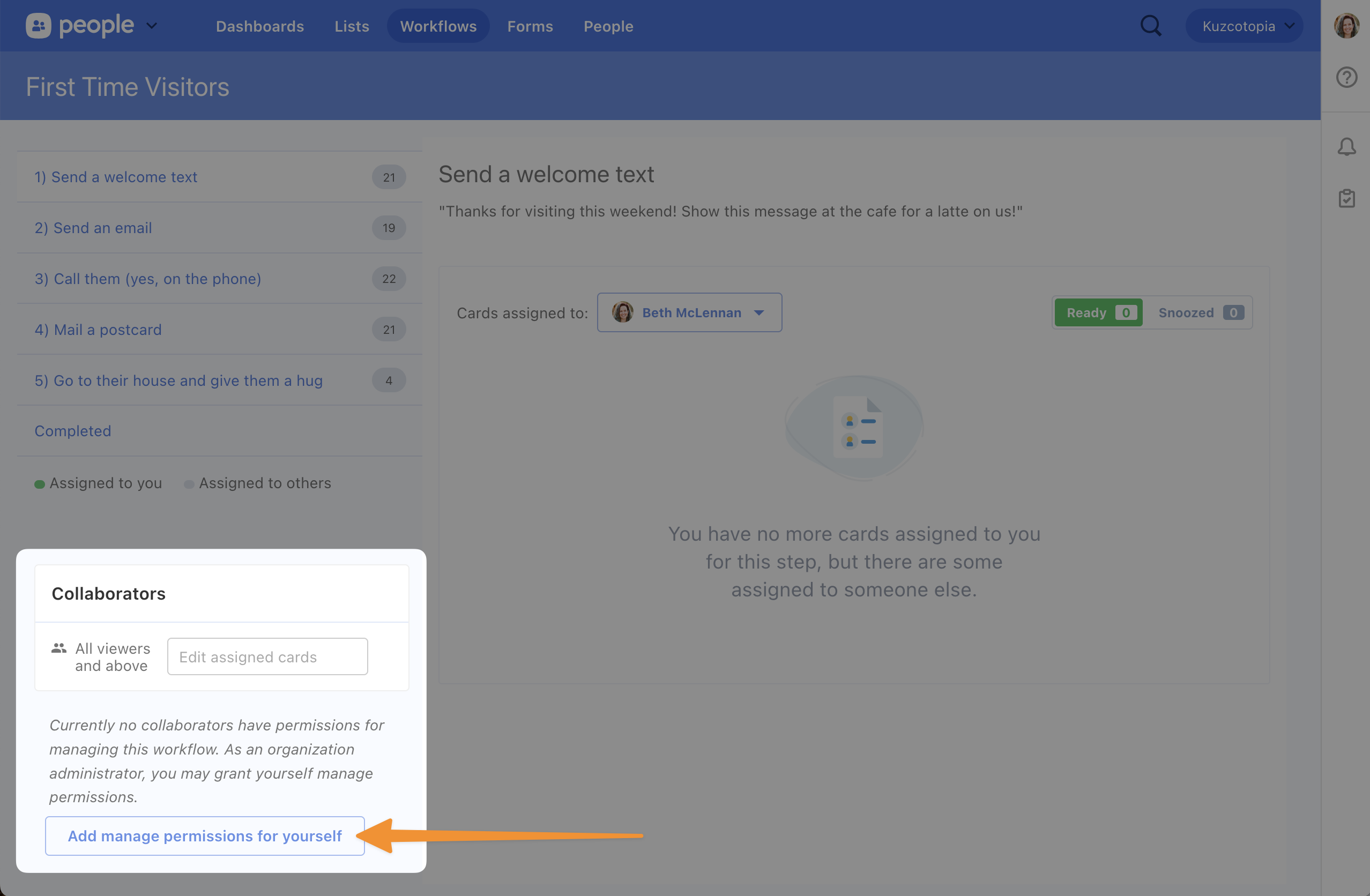 Now that you're able to manage the workflow, you can see all of the cards in progress, adjust assignees, and so on!