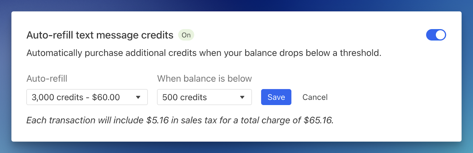 We just released a nifty improvement to help you better manage your SMS credits: auto-refill. This optional setting allows you to automatically purchase additional credits when your account drops below your set threshold.