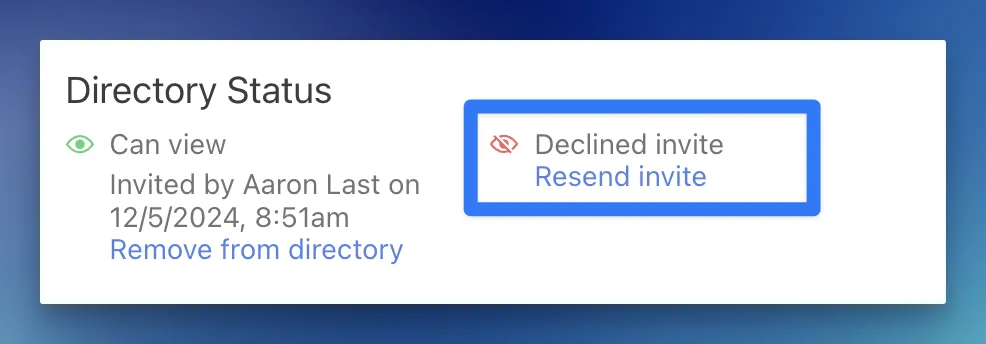 Some congregants you invite may also choose not to be listed and ignore your invitation as a result. To help understand when this happens, we also included a button indicating they prefer not to be listed in the directory. If a congregant clicks this button, “Declined invite” will display under Directory Status on their profile.