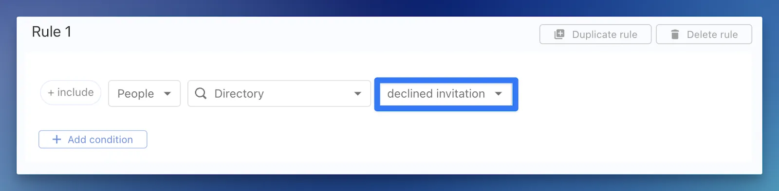 If you’d like to see everyone who has declined so that you can follow up with them or remove their permission to the directory, you can create a list with the condition People > Directory > Declined invitation.