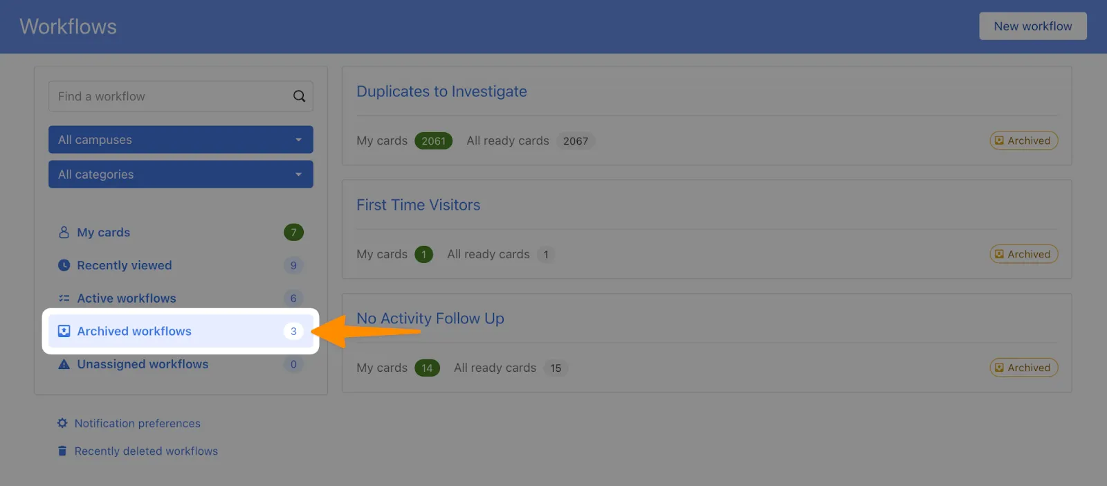 Need to bring it back? Unarchive a workflow to pick up where you left off.