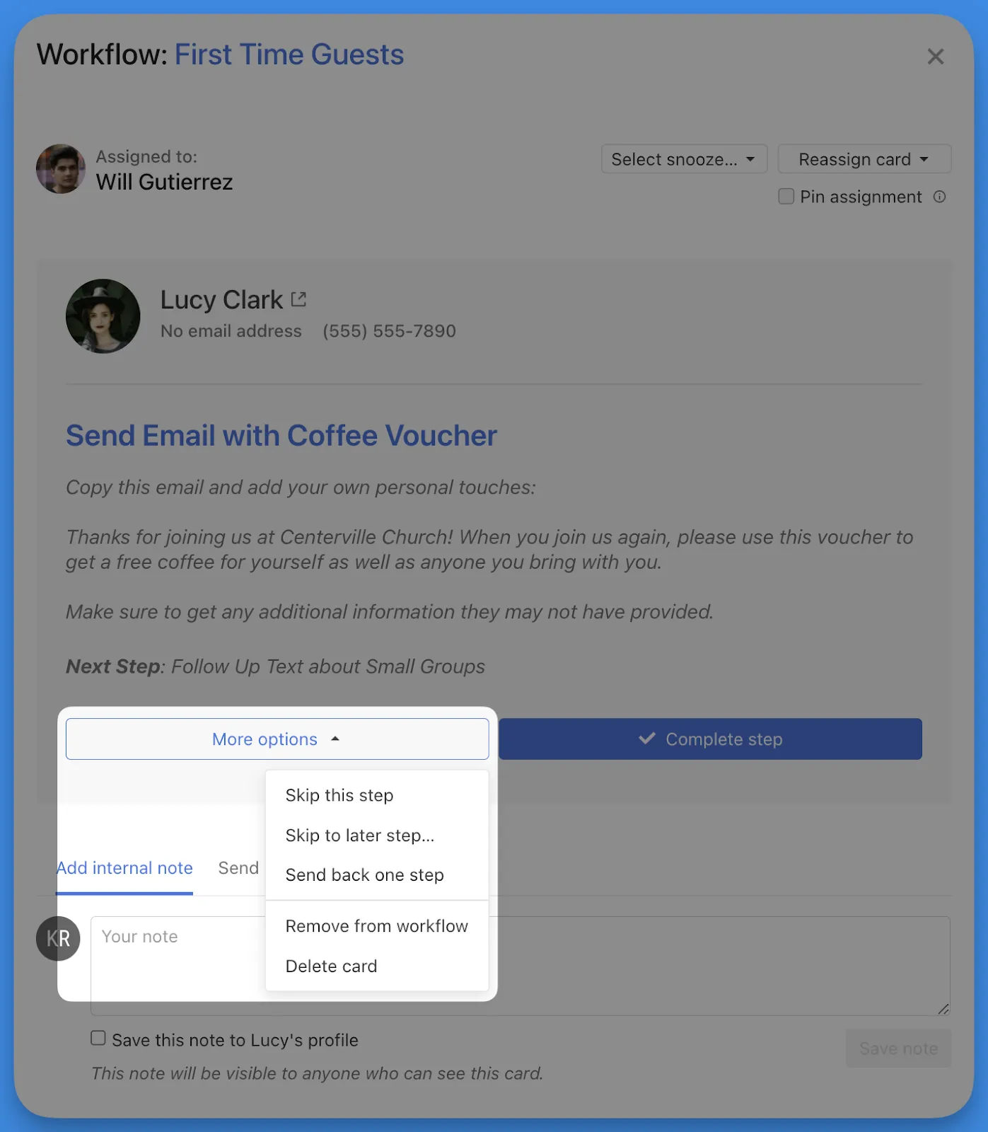 You can move cards to the next immediate step, but sometimes, it’s helpful to skip ahead multiple steps. Cards now have the additional option to skip to a specific future step in the “More options” dropdown: