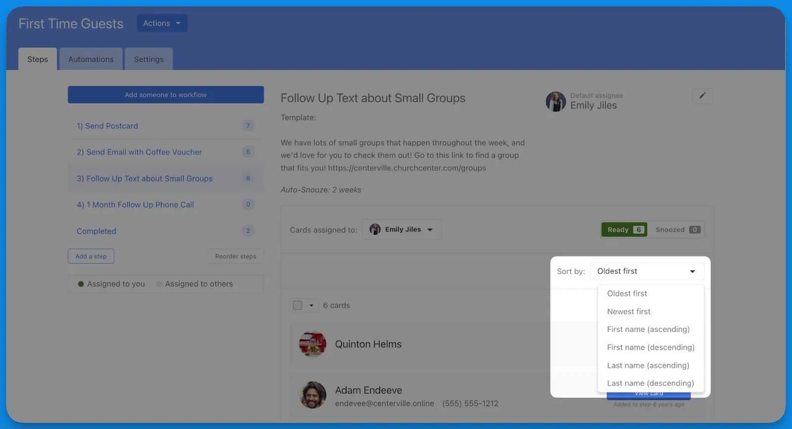 In addition to sorting by card age, we’ve added options for sorting by first or last name when it makes sense for your process: