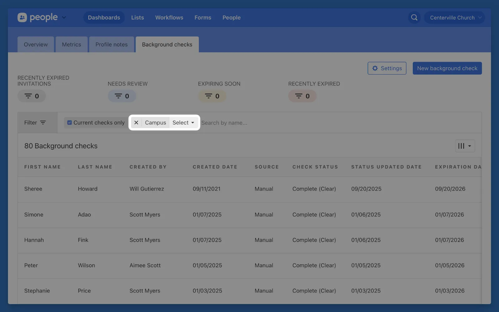 We’ve rolled out a series of updates to make it easier to filter by campus across your People tools.