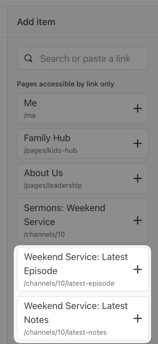 To save some of those taps, you can now drop the latest episode or notes directly into your Church Center navigation!