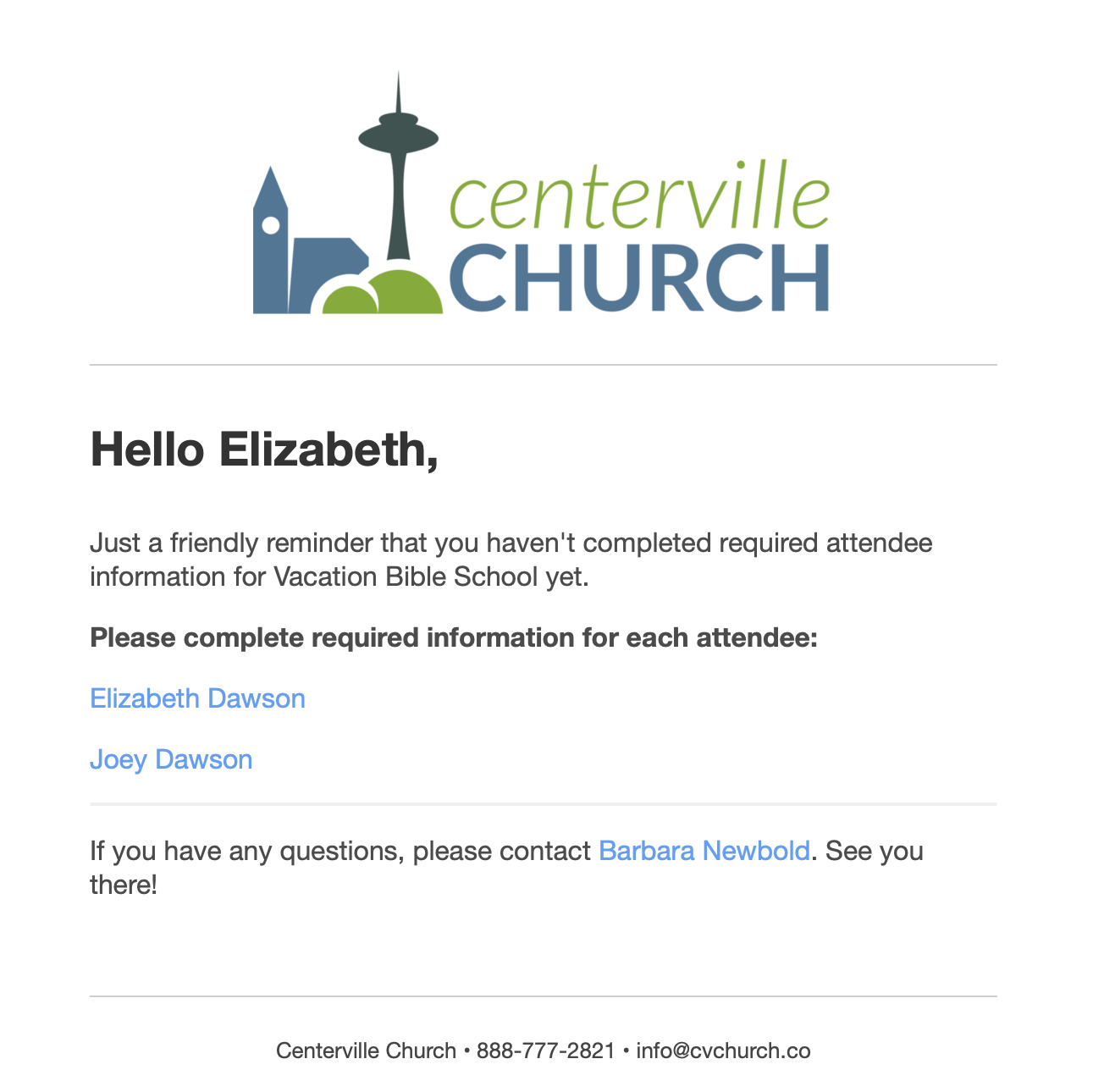 The updated Church Center workflow optimizes for getting people registered, so you know who they are, when they're coming, and what they're participating in. But some people are stopping there and not providing the additional information that's requested.