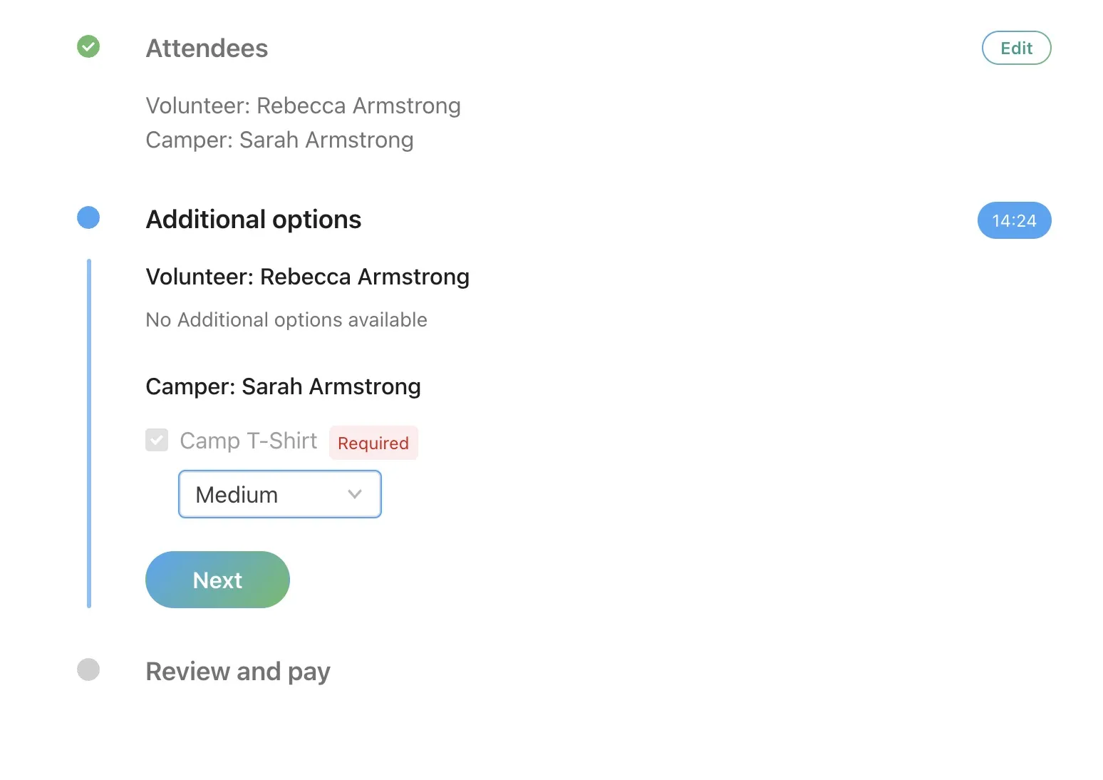 When someone registers, there are often additional options available to them based on their selections. Maybe conference attendees need to select their sessions, or VBS volunteers need to select a t-shirt size, or class attendees need to choose a lunch option.