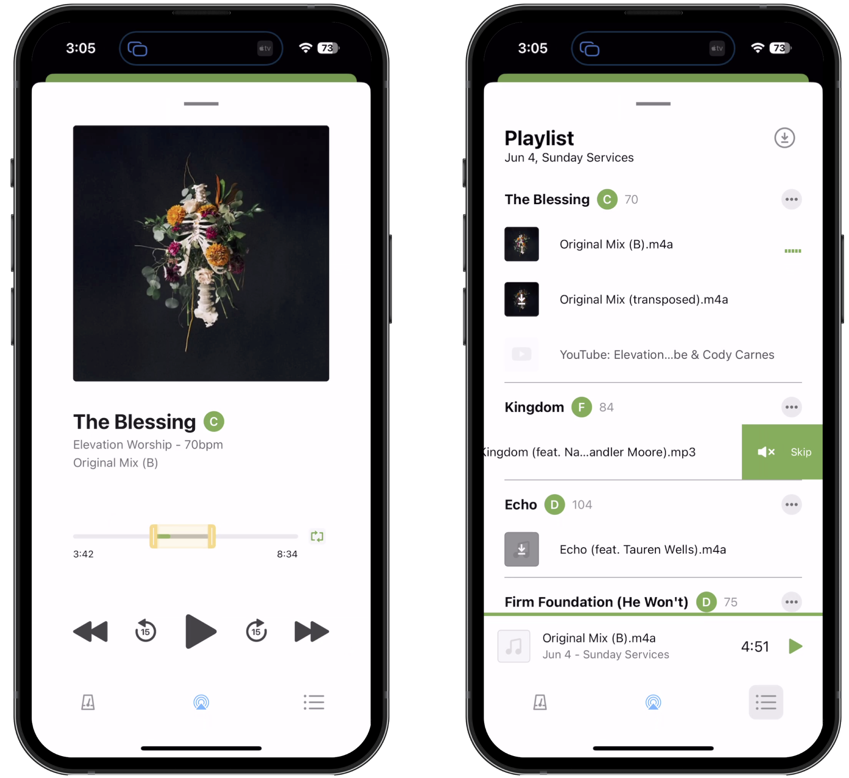 When your team members want to rehearse music to get ready for your worship services, they often turn to the Services mobile app for Android or iOS. Loading up the playlist of audio recordings in the mobile media player is one of the most common ways to learn that music. Today, we've added a new Now Playing view to the mobile Media Player that focuses on whatever file is currently playing, with some new buttons optimized for rehearsing.