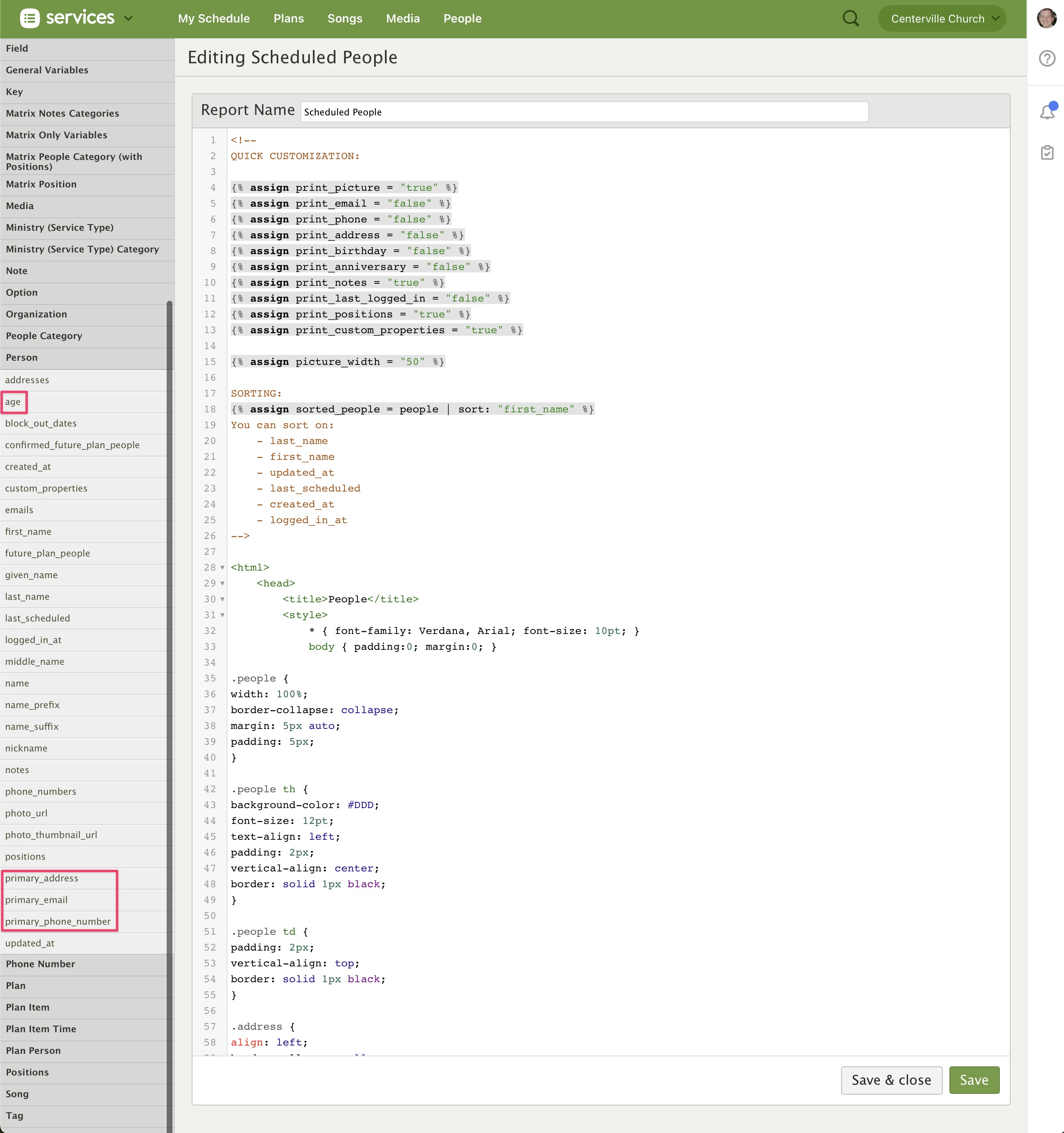 This update adds new variables to custom reports that are focused on the information of your people. You can now access a person’s age, phone number, email address, and physical address to make it easier to generate reports based on teams and more.