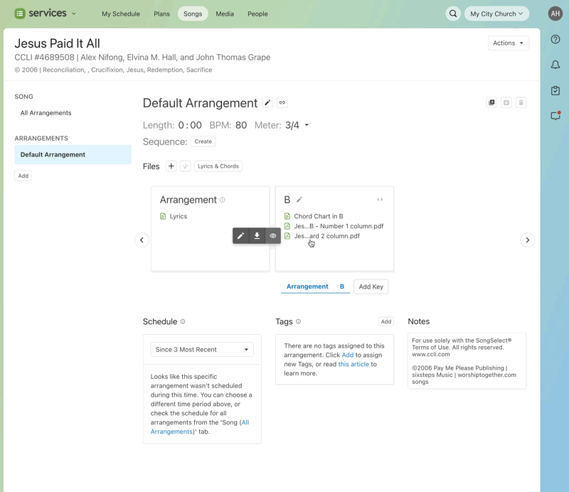 Two weeks ago we expanded our SongSelect integration to include importing ChordPro(editable charts). Today, we are continuing those integration improvement efforts by introducing new layout options and chart type options. More specifically, if you don't need editable text and prefer SongSelect's pre-formatted PDF files, you can now import 2-column charts and number charts directly into Services.
