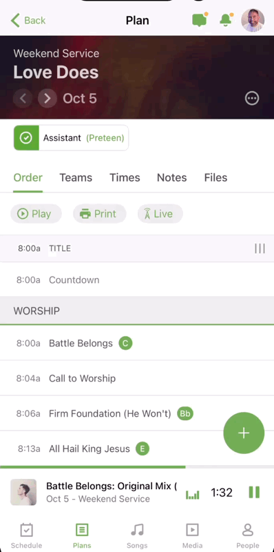 Update the Planning Center Services app on iOS or Android, open your plan, hit Play, and explore the new Media Player experience.