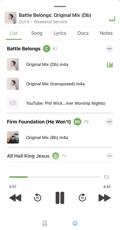 Docs – Open attached files like chord charts, PDFs, or arrangement docs without leaving the player.