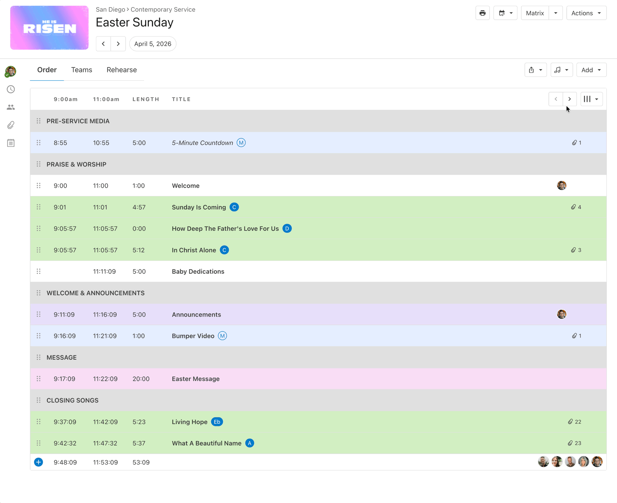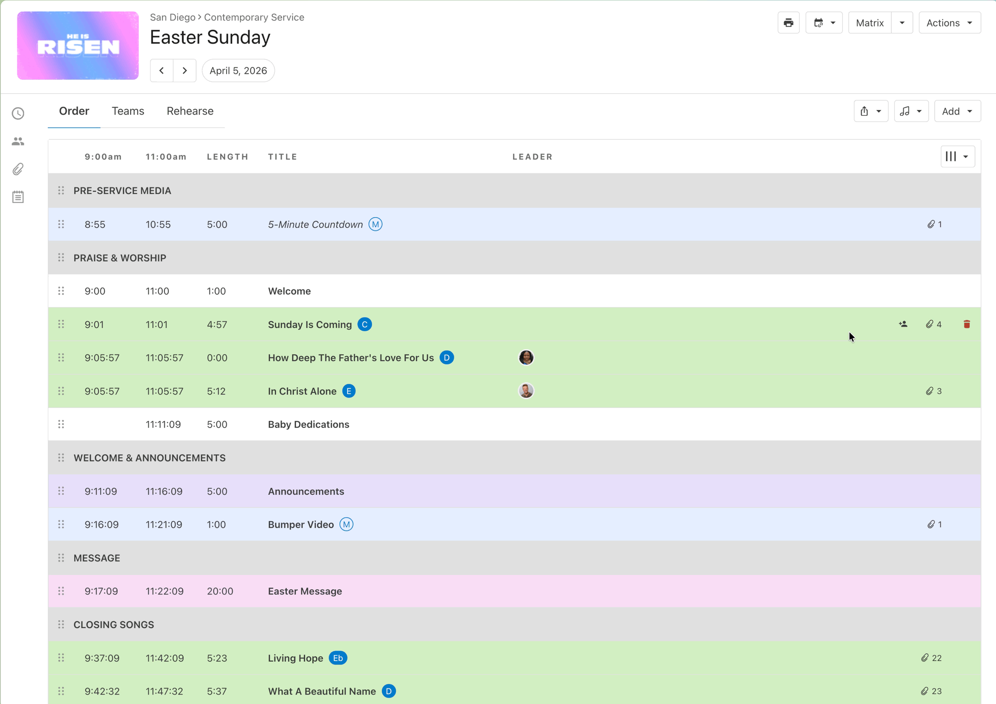 Leader visibility is built right into your order of service: