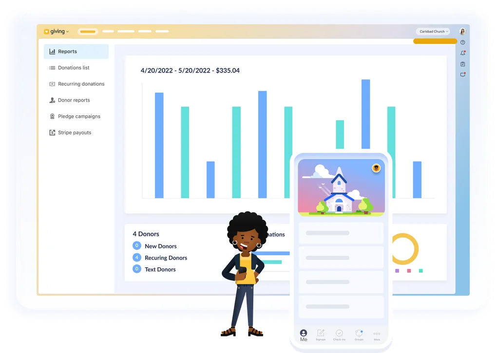 With everything in a central place, congregants can give right alongside other activities, like chatting with their group, managing their volunteer schedule, and more.