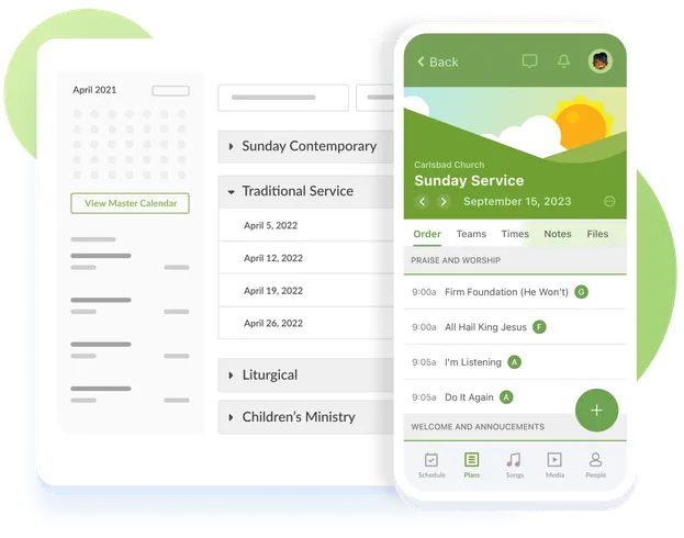 Worship planning, volunteer scheduling, team communication, and rehearsal tools all in one place.