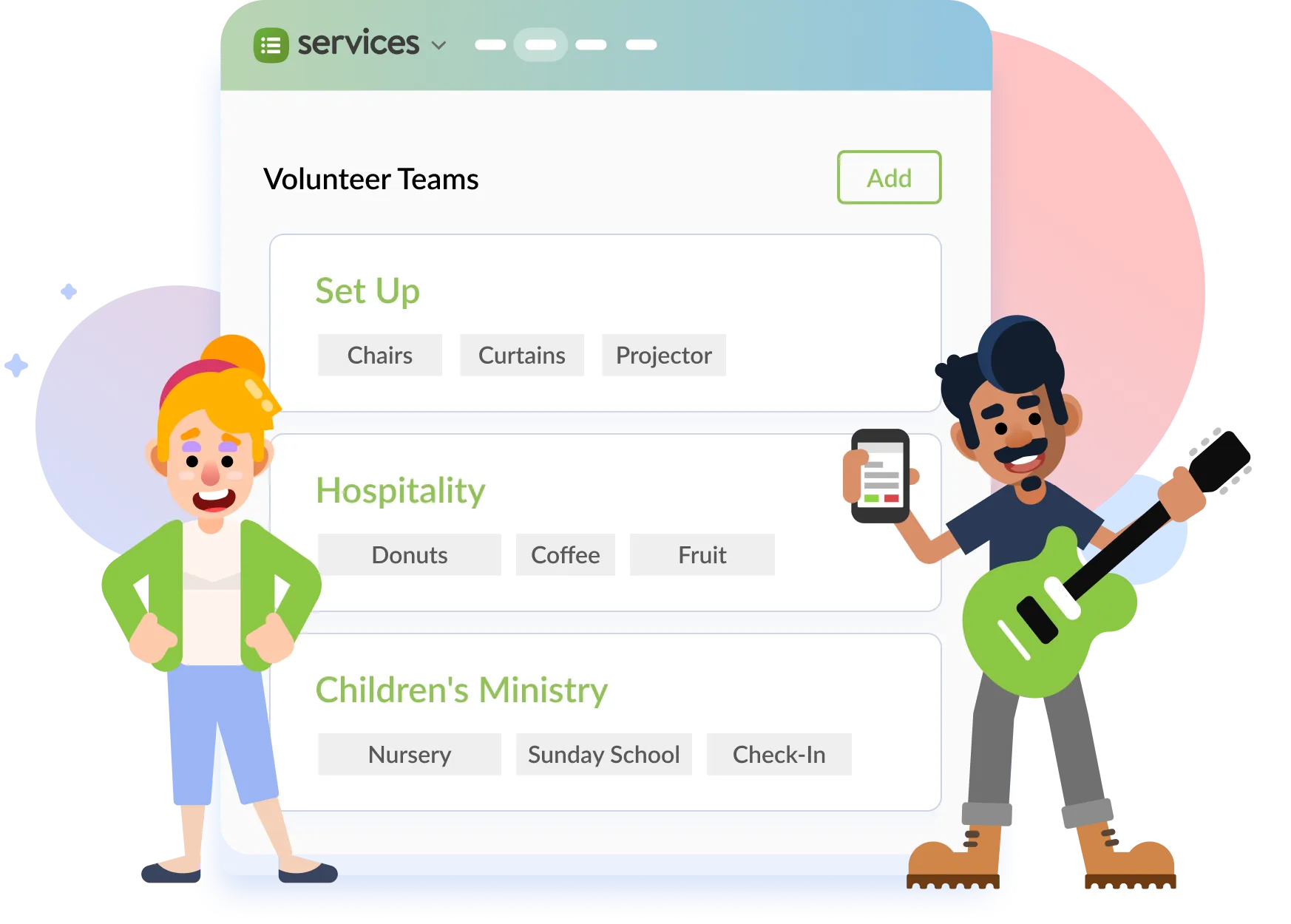 Manage your database, plan services, and check people in from an app.
